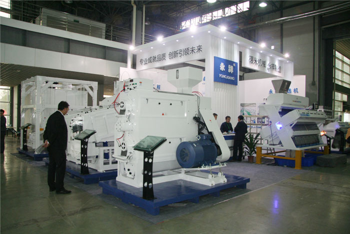 我公司精心策劃組織參加了本屆展會。公司的展區(qū)為150平方米,與日本佐竹公司、瑞士布勒公司、美亞光電的展區(qū)為鄰,展出了QR6全數(shù)字智能色選機(jī)、CM5000S×2A雙輥拋光機(jī)、MMJP120×8白米分級篩、MQCZ70×20×2雙體重力谷糙分離機(jī)、MJXH29×8A厚度分級機(jī)、空壓機(jī)等新產(chǎn)品,受到糧食加工企業(yè)青睞,絡(luò)繹不絕的客商蒞臨展位鑒品洽談。尤其是這次參展的QR6全數(shù)字智能大米色選機(jī)和雜糧色選機(jī),是公司研制生產(chǎn)并成功推向市場的新型色選機(jī),具有高清識別、高速分選、產(chǎn)量大、精度高、帶出少、性能穩(wěn)定、外觀大氣美觀的特點,充分體現(xiàn)出我公司高科技光電機(jī)一體化產(chǎn)品的實力所在,“永祥”牌MLN型聯(lián)合碾米成套設(shè)備在本屆展會糧機(jī)設(shè)備金獎榜上,獲得了金獎。